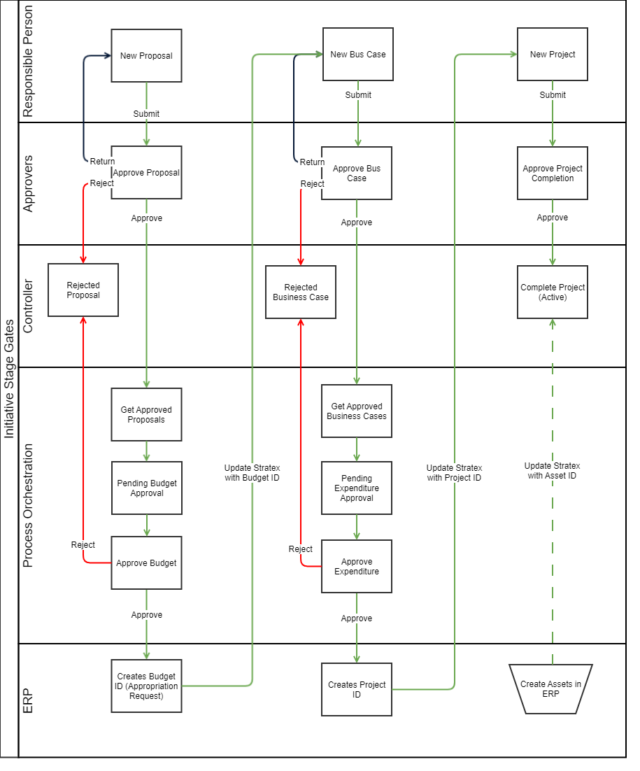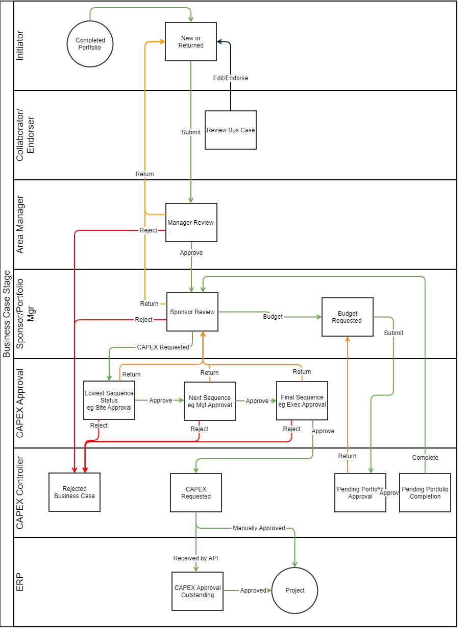 Standard Workflows Idea WorkflowProposal WorkflowBusiness Case WorkflowERP Workflow (without Portfolio Management)ERP Workflow with Portfolio Management active in Stratex Online